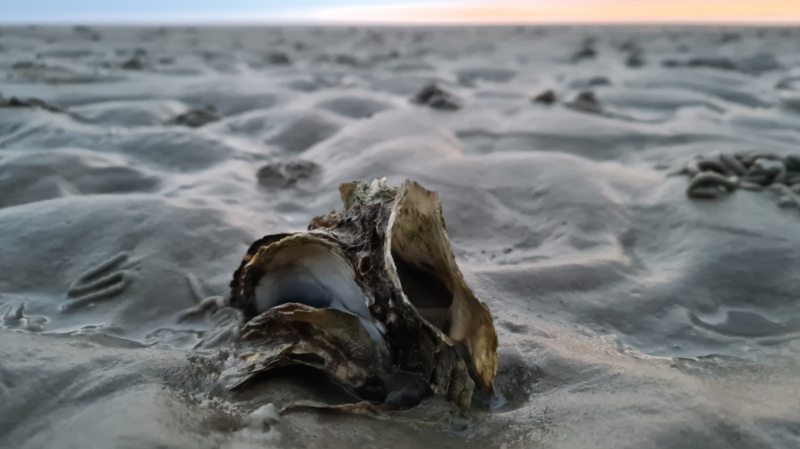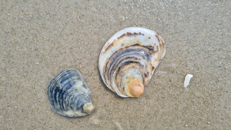 • Auch ist der Strand zum Teil übersäht mit Amerikanischen Schwertmuscheln, die über Schiffe nach Europa kamen (so lernen wir später)