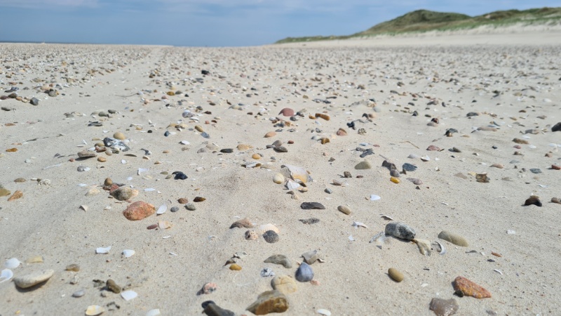 • Am Strand von Steenodde finden wir erstmals genug Steine um nach Fossilien zu suchen