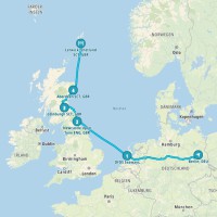 Wir verabschieden uns von „Frau Antje“ und schlendern über den Regenbogenpfad zurück zu unserer Olga, die wir mit Scheinwerfer-Stickern noch fit für den Linksverkehr machen. Bei bestem Wetter „schippern“ wir auf der DFDS Princess Seaways nun nach Newcastle in Großbritannien.