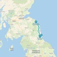 Wir erkunden das schöne Berwick upon Tweed und es geht weiter nach Newcastle. Hier wollen wir vor unserer Fährüberfahrt noch das "Angel of the North" besuchen. Diese 200 Tonnen schwere Stahl-Skulptur wurde erst Ende der 1990-er Jahre vom Bildhauer Antony Gormley konzipiert und von pfiffigen Ingenieuren umgesetzt. - Tom fällt auf, dass das genau der selbe Künstler des hockenden Mannes vom Anfang unserer Reise ist. Was für ein lustiger Zufall. So schließt sich der Kreis.