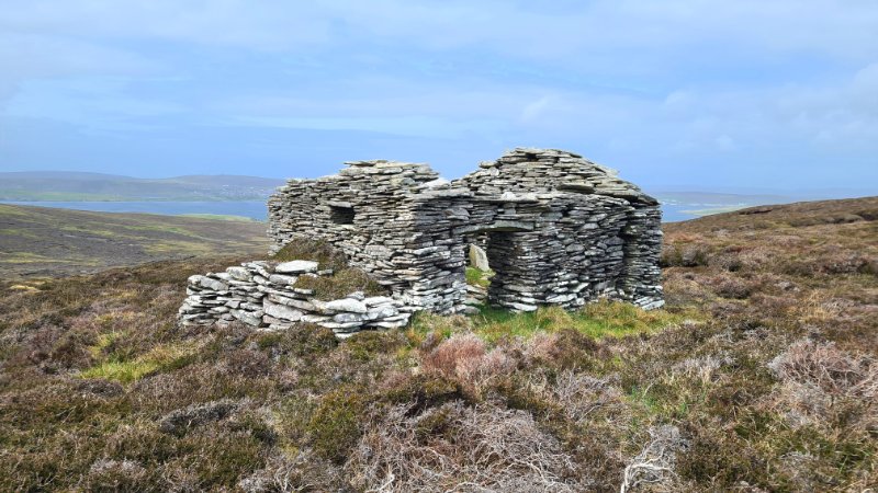 Nach dem Tipp eines freundlichen Bauern laufen wir querfeldein über Wiesen voller Erika und feuchter Hochmoore in Richtung Berggipfel. Wir erleben live, wie genial und haltbar die Steinhäuser hier vor mehreren hundert Jahren gebaut worden sind. Es sind wirklich „nur“ flache Steine clever übereinander gestapelt und geschachtelt. - Ein einfacher und nachhaltiger Schutz vor Wind und Wetter.