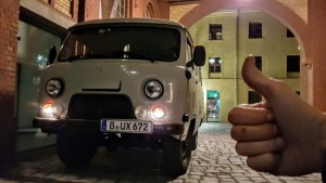 Die Sitzposition auf der Achse (mit der Lenksäule zwischen den Beinen) ist entspannend, der Motor ist leiser als gedacht und das Fahrgefühl ist einfach unglaublich (geil)! Der UAZ ist groß und klein zugleich: Knapp 2,10m hoch aber dafür nicht länger als ein Golf, das nenn ich perfekte Raumausnutzung. Kombiniert mit der großzügigen Bodenfreiheit und dem zuschaltbaren 4×4 Antrieb ist es für mich das Traum-Abenteuer-Mobil.