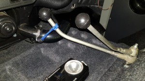 Update 2025: Wenn es dann immer noch scheppert, empfehle ich nicht mehr, die Hebel mit einem Gummi-Spannband fixieren. Das dämpft zwar bedingt die wilden Vibrationen und kann vermeiden, dass der Straßengang rausspringt. Aber es bekämpft nicht die Ursache und kann zu unnötigem Verschleiß an Schiebezahnrad führen. Siehe Update zum Olga - Verteilergetriebe. ).