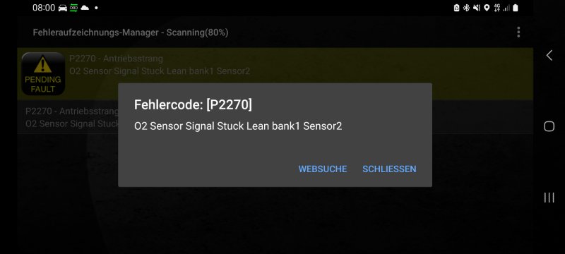 Leider wurde das Abgasverhalten unserer Olga über die letzten Jahre immer schlechter, was bei der AU sichtbar wurde. Zusätzlich kam zuletzt auch noch eine OBD II Fehlermeldung dazu: „P2270: Sensor Signal Stuck Lean Bank 1 Sensor 2“.