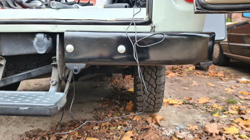 Da Olga keine Kunststoffstoßstangen hat, was das mit Ultraschall arbeitende System negativ beeinflussen kann, habe ich mich -gegen- Einbau-, und -für- Aufbau-Sensoren entschieden. Diese findet man im LKW-Zubehör.