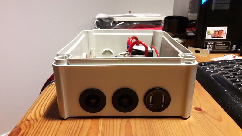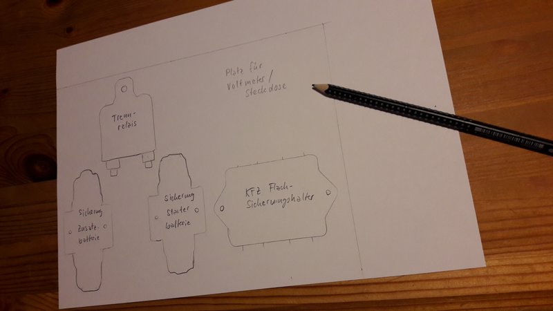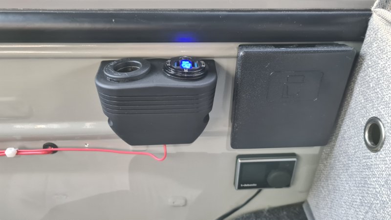 Damit das kleine russische „Campingbrot“ auch ein wenig autark laufen kann, sollte eine Zweitbatterie rein. Energie für 3h Kühlen oder Heizen - ohne danach nicht mehr Starten zu können. Ein Schaltkasten mit Trennrelais und Spannungsüberwachung soll Anschlussmöglichkeit für weitere 12V Verbraucher (2x KFZ-Steckdosen), Ladestation für Mobiltelefone (2x USB-Steckdosen) bieten und das manuelle oder automatische Trennen der Batterien ermöglichen. Dafür wurde das D+ Signal der Lichtmaschine abgegriffen.
