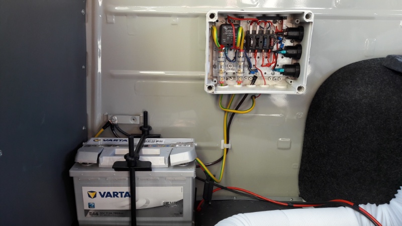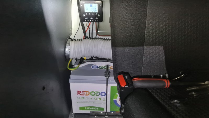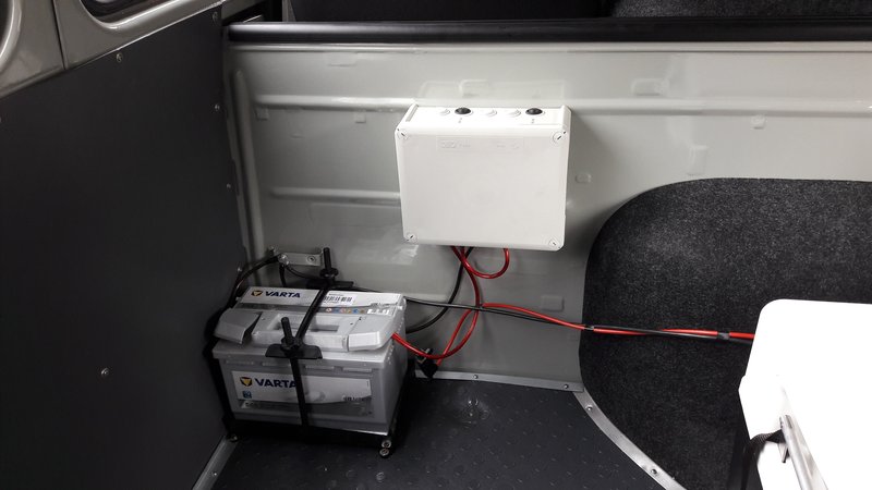 Die Zweitbatterie wurde im Rahmen des Einbaus der Solaranlage von 74Ah auf 140Ah aufgerüstet. Sie liefert nun genug Energie für Standheizung und alle internen Verbraucher. - Mal sehen ob Olga in Zukunft noch eine LiFePO4 Batterie bekommt. Fortsetzung folgt…
