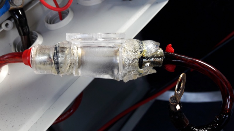 Schlechte Materialqualität machten ein Update der Zweitbatterieschaltung notwendig. Die Zweitbatterie wurde nicht mehr geladen, die Kabel waren durchgebrannt und die Sicherungshalter geschmolzen! Gut dass nichts weiter passiert ist.