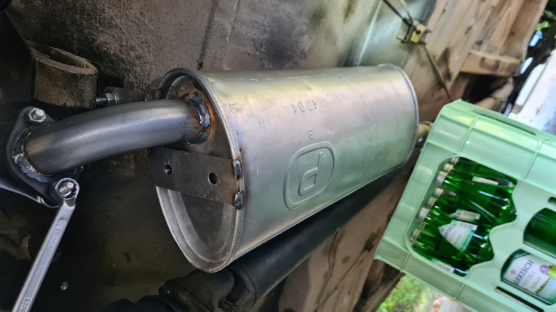 Update: Da das Endrohr etwas zu kurz war, habe ich dem Wolga doch noch einen passenden Endschalldämpfer verpasst (aus dem GAZ 2410). Die Arbeit verlief super, aber die Resonanz ist immer noch da. LOL Zusammenfassung: