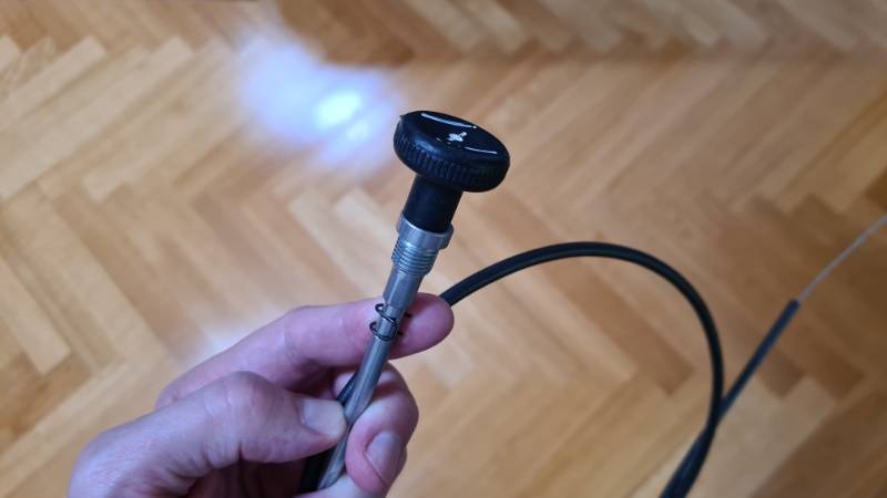 Die Idee das einfach mit einem GAZ / UAZ Ersatz-Bowdenzug zu reparieren ging leider schief. Nachdem die ganze Arbeit mit dem Verlegen durch's Armaturenbrett und zum Motorraum erledigt war, ist bei der zweiten Betätigung gleich der Griff abgebrochen.