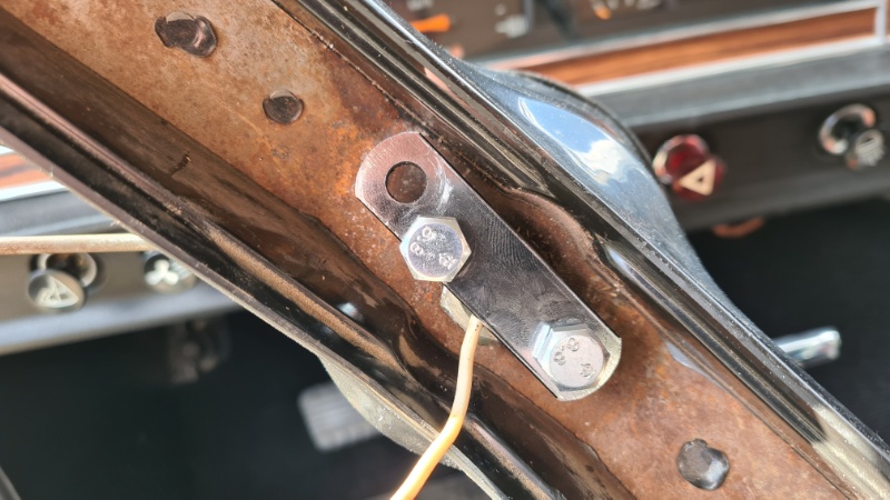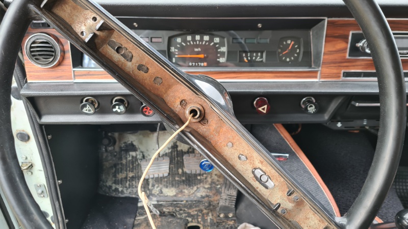 Das schiefe Lenkrad wurde bereits mit einer selbstgebastelten Abziehvorrichtung korrigiert.