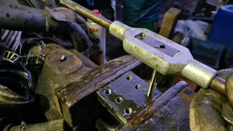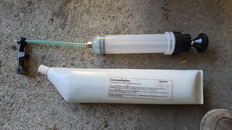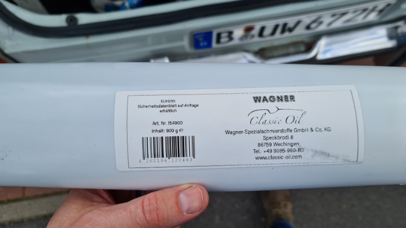 Das angeblich vom Vorbesitzer abgedichtete Lenkgetriebe wurde mit dem richtigen Öl befüllt (es war dünnes Motoröl statt Getriebeöl drin) und am Stirndeckel neu abgedichtet. Endlich tropffrei wurde das Lenkgetriebe jedoch erst nach Tausch des Lenkgetriebeöls gegen Oldtimer-Getriebefließfett (Danke für den genialen Tipp an Stan). Mit einer Fettpresse und einem selbstgebasteltem Gummi-Adapter konnte es gut eingefüllt werden.