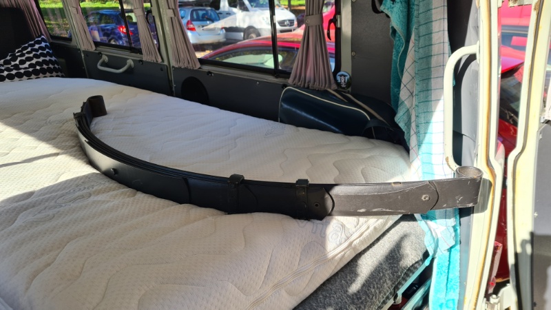 - Die hinteren müden Blattfedern durch nagelneue Ersatzteile (Danke Daniel) ersetzt