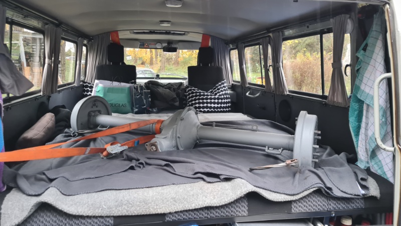 - Alte, mahlende Hinterachse ausgebaut und durch die regenerierte Achse ersetzt