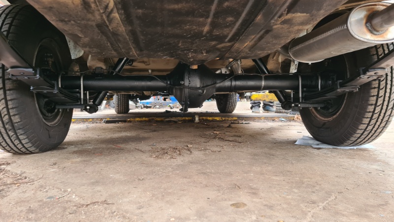 Die größte Fahrwerks-Baustelle dauerte auch am längsten. Die Hinterachse machte üble Mahlgeräusche (Lagerschaden) und die Blattfedern waren nach fast 40 Jahren einfach schon müde und schief.