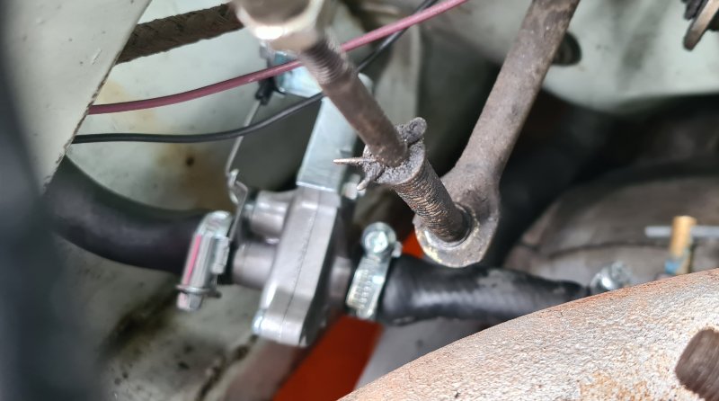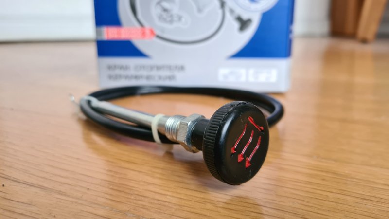 Glücklicherweise gibt es im Ersatzteilhandel einen Nachrüst-Heizungshahn für den UAZ (Teilenummer: 3741-8101400-18). - Die Idee war, diesen Hahn einfach „in Reihe“ zum bestehenden (geöffneten) Heizungshahn einzubauen und über einen Seilzug von innen aus zu betätigen. Lange habe ich überlegt, wo ich am Besten den Betätigungsknopf dafür installiere, bis mir die Idee kam, einfach den bestehenden Hebel der Heizungsklappe dafür zu verwenden.