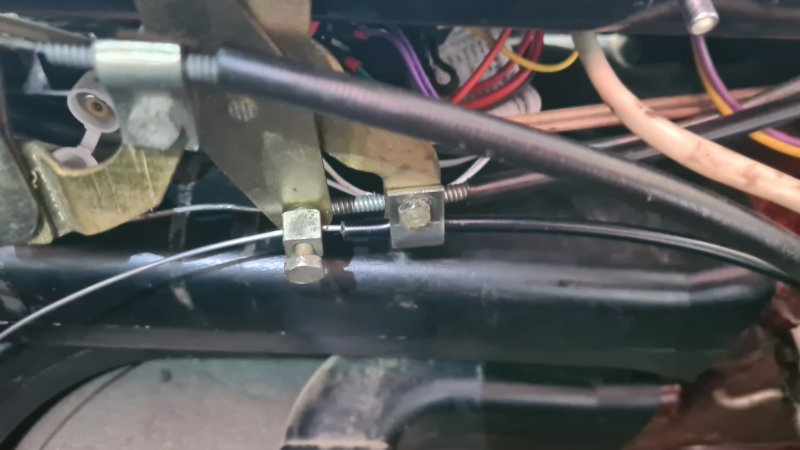 - Fixierung des Betätigungs-Zugess am rechten Hebel der Mittelkonsole im Innenraum