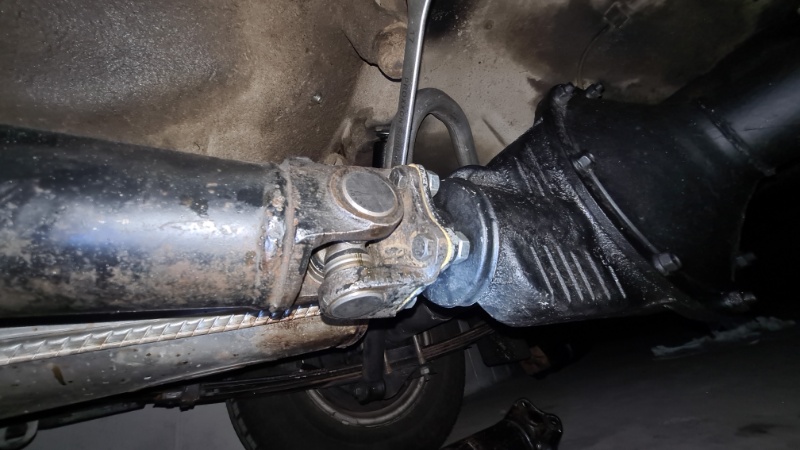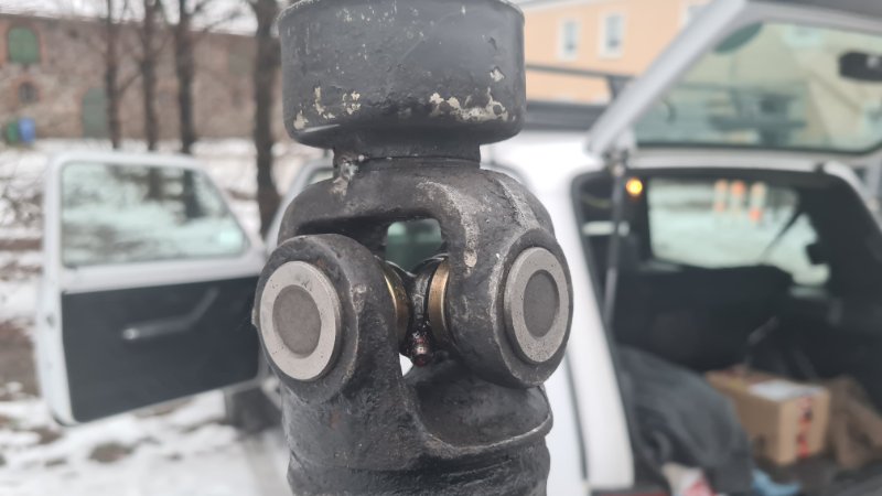 Durch Zufall kam ich an eine (leider nicht preiswerte) UdSSR-Kardanwelle. Aber der Kauf hat sich gelohnt, denn die Welle ist gut 1 cm kürzer als meine Originalwelle. Leider waren die Kreuzgelenke fest und mussten erstmal aufgearbeitet werden (Abschmieren allein half nicht).