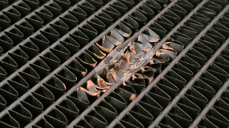 Dass der Kühler nicht ganz dicht ist, wussten wir schon beim Kauf. Wie er aber vom Verkäufer „geflickt“ wurde, hat uns ganz schön erschüttert (der Kühler wurde geschweißt und geklebt - statt gelötet und anschließend der gesamte Kühlkreislauf mit Dichtmittel versaut…).