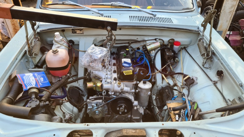 Natürlich lief auch die Wiederbelebung nicht ohne Probleme, die Sven und Timi mit viel „Pfiff“ gelöst haben, denn es war wirklich nichts plug&play. Die Getriebe- und Auspuffhalterung musste angepasst werden. Auf Grund des K151 Vergasers brauchten wir ein neues Luftfiltergehäuse. Die Kühlwasserschläuche waren zu kurz, da der Thermostat-Flansch für „Gazelle“ und nicht für „Wolga“ war. Darüber hinaus waren noch viele Kleinigkeiten anzupassen (incl. Elektrik-Anschlüsse, Verkabelung)… aber er läuft sanft und sauber, nachdem er die schon beim Motorcheck bewährte Elektronik-Zündung bekommen hat! - Das folgende wurde im Detail erledigt: