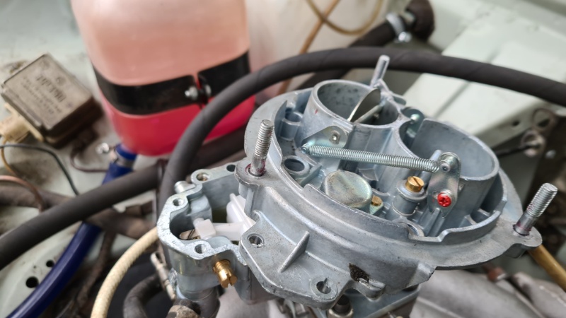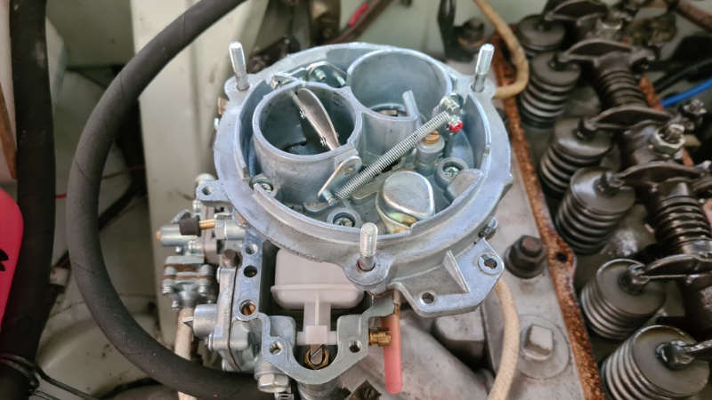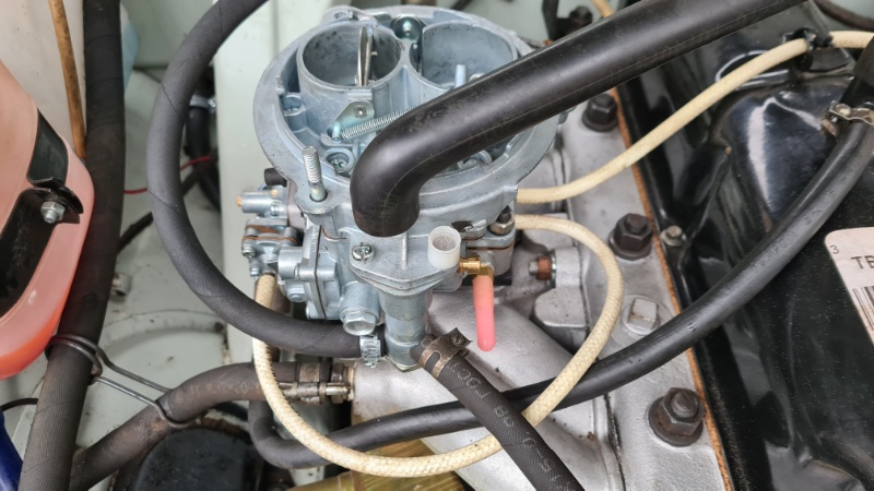 Die Adaption des Gasgestänges war schon schwieriger. Da wir aufgrund des neuen Motors vom Vergaser K-126GM auf den moderneren, seilzugbetriebenen K-151C umgerüsten wollten, mussten wir „tricksen“ was das Gestänge angeht. Der Hub reichte nicht aus, die Flucht stimmte nicht mehr und das Originalgestänge war am Umlenkpunkt „zu ausgelutscht“, um die Drosselklappe des neuen Vergasers voll zu öffnen. Also wurde von Sven ein neuer kugelgelagerter Drehpunkt und ein angepasstes Gestänge gebaut. - Nach Schwimmerstandkorrektur läuft der Motor nun 1A. ♥